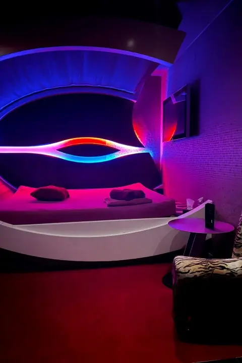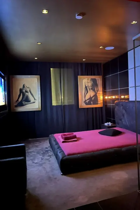 Ein zusätzlicher Fernseher bietet Gästen die Möglichkeit, individuelle Wünsche umzusetzen und das Erlebnis ganz nach den eigenen Vorstellungen zu gestalten. Dadurch entsteht ein Raum, der persönliche Fantasien stilvoll begleitet und ein Höchstmaß an Individualität ermöglicht.